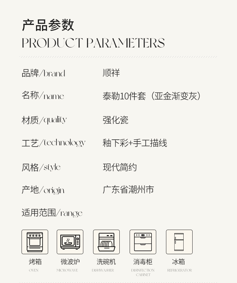 名称:顺祥亚金渐变灰10件套-套装餐具