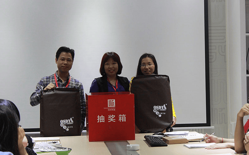 会上,为了奖励顺祥全体员工在3月份全国经销商大会的优异表现,特别设立了员工抽奖环节。抽奖设置了幸运奖、三等奖、二等奖、一等奖多个奖项,奖项多多,奖品丰富。一等奖是价值3999元的扫地机,即使是幸运奖也很受欢迎,是非常实用带有“顺”字logo的移动电源。中奖率高达60%,抽奖环节笑声连连,中奖的员工喜笑开颜,没有中奖的员工也沉浸在抽奖的欢乐气氛里,可谓是皆大欢喜。