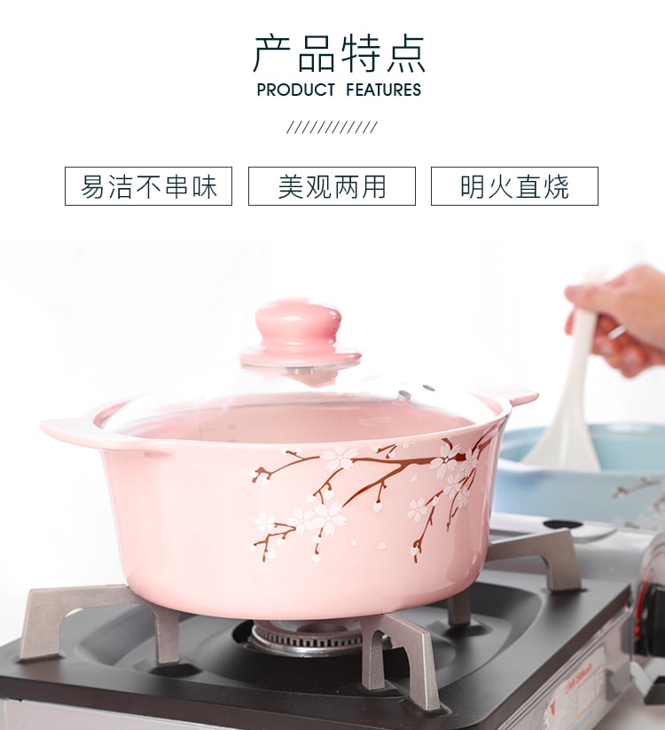 明火直烧 可以直接在明火上使用细瓷汤锅,产品获得国家发明专利,经广东省科学技术情报研究所国内查新,真正实现了厨房革命。 美观两用 纯瓷釉面配合时尚美观的画面设计,既是锅,又是碗,真正做到了“出得厅堂,入得厨房”。 易洁不串味 瓷质密实无毛针孔,釉面光滑细腻,烹煮食物不串味,极易清洗。