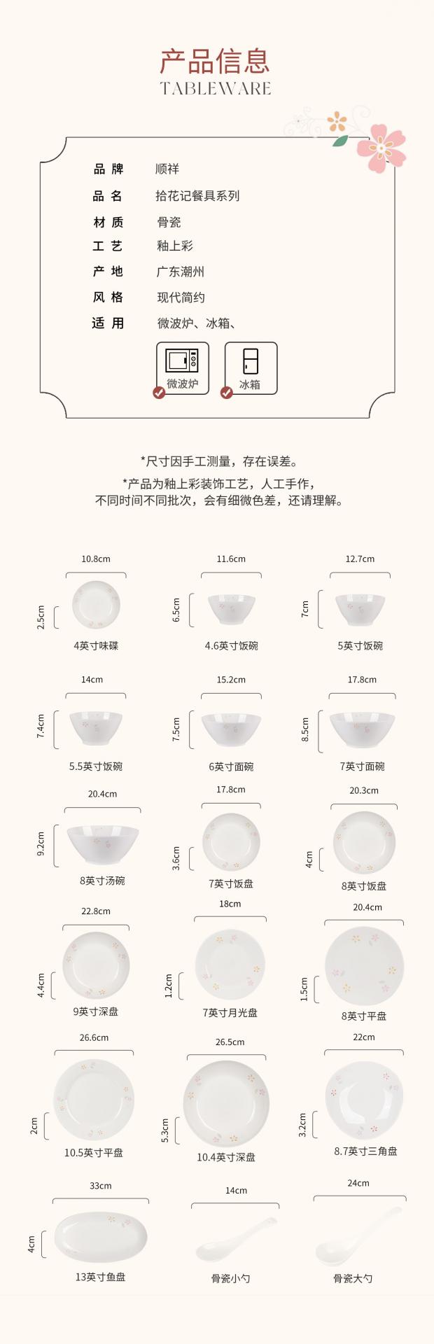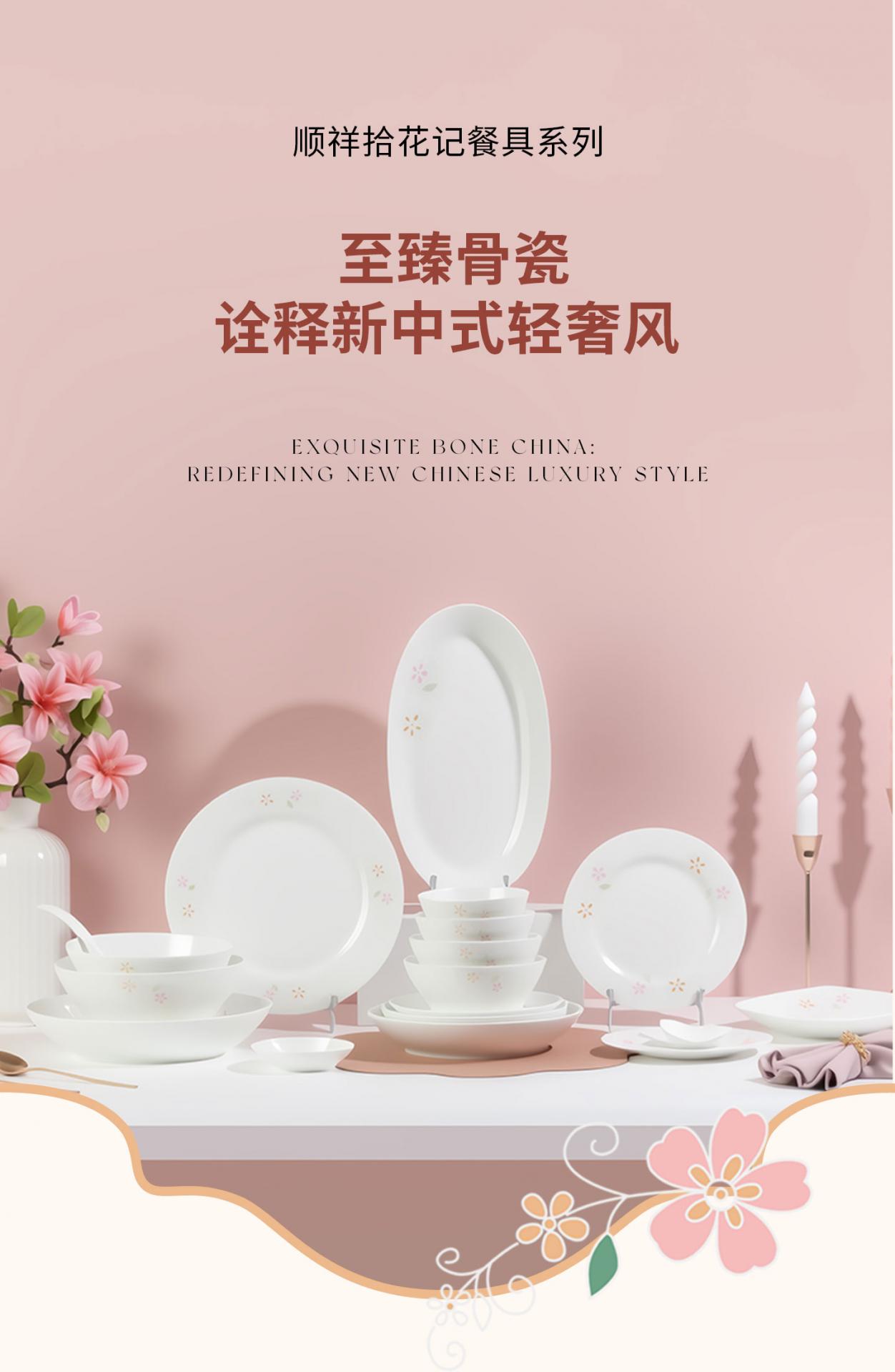 名称:顺祥拾花记系列骨瓷餐具