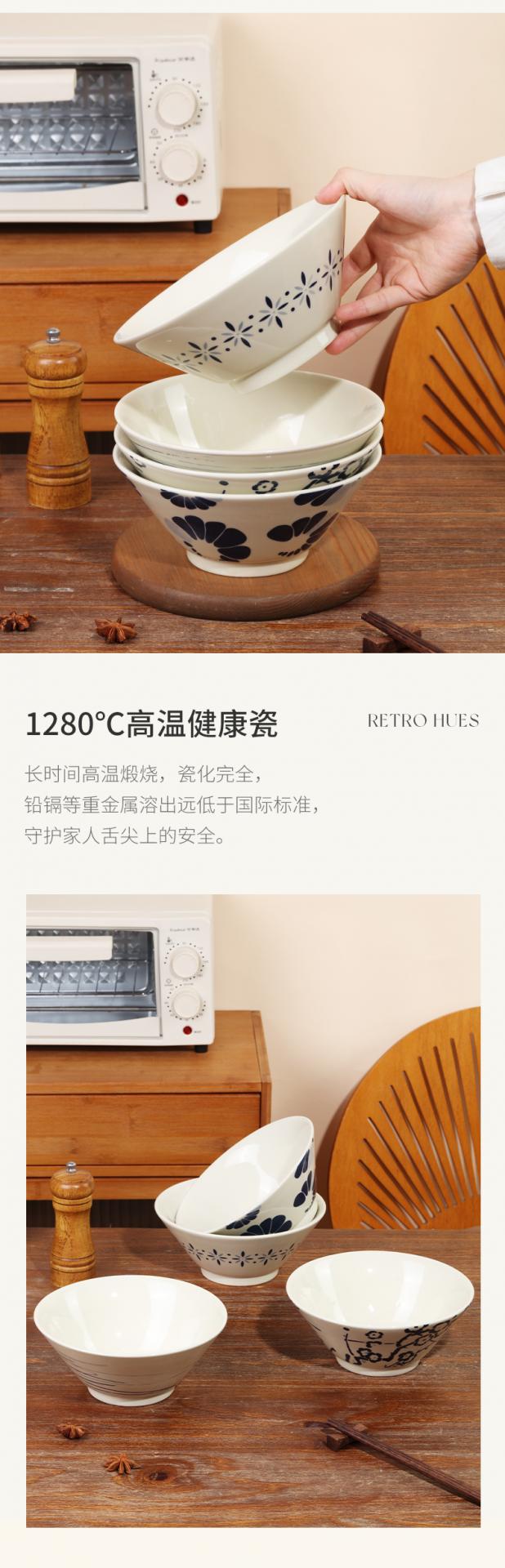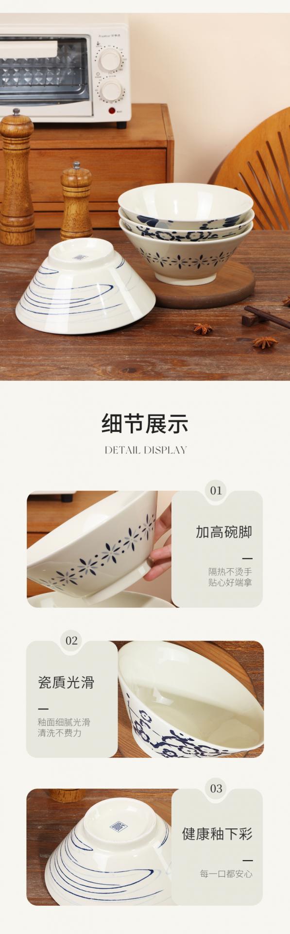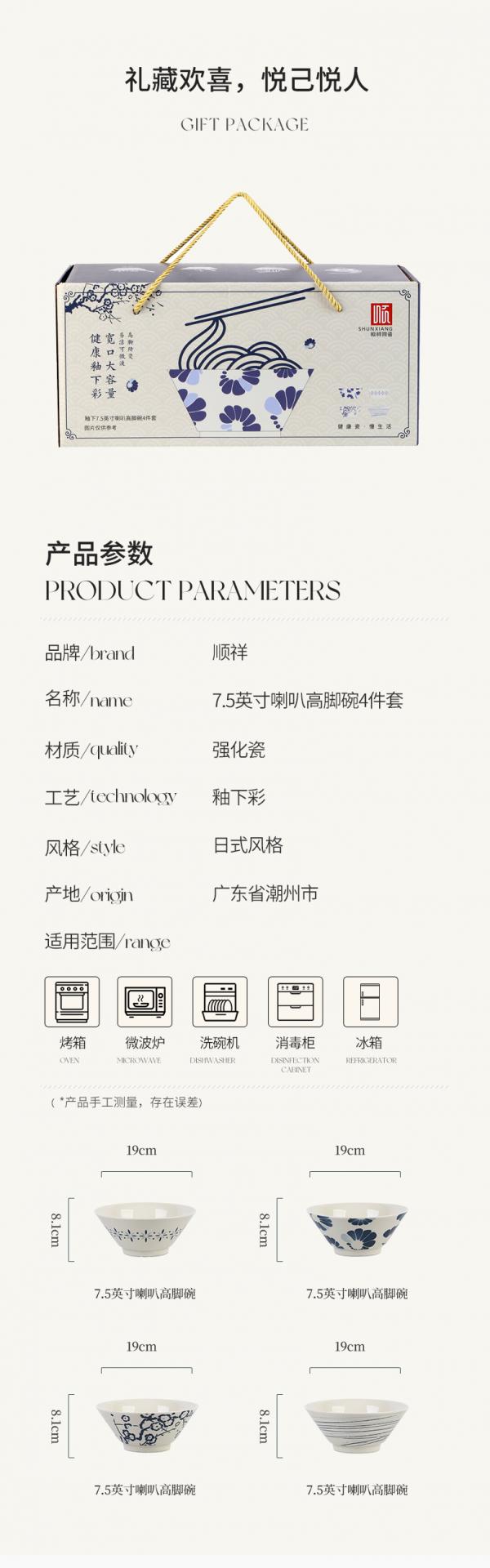 名称:顺祥釉下7.5英寸喇叭高脚碗4件套(蓝调食器-A)