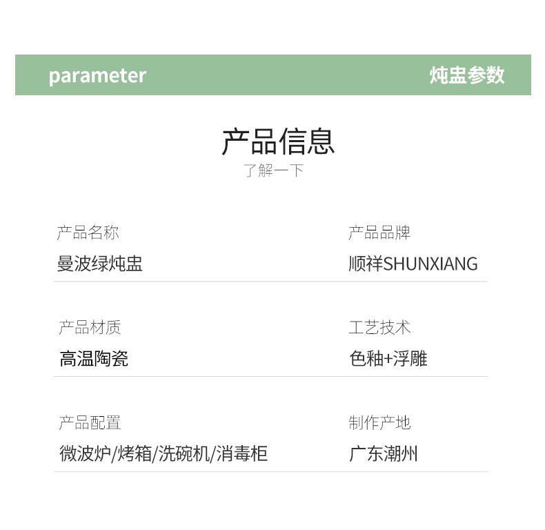 名称:曼波绿炖盅