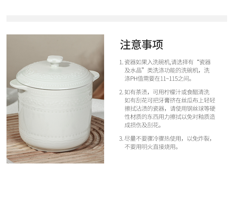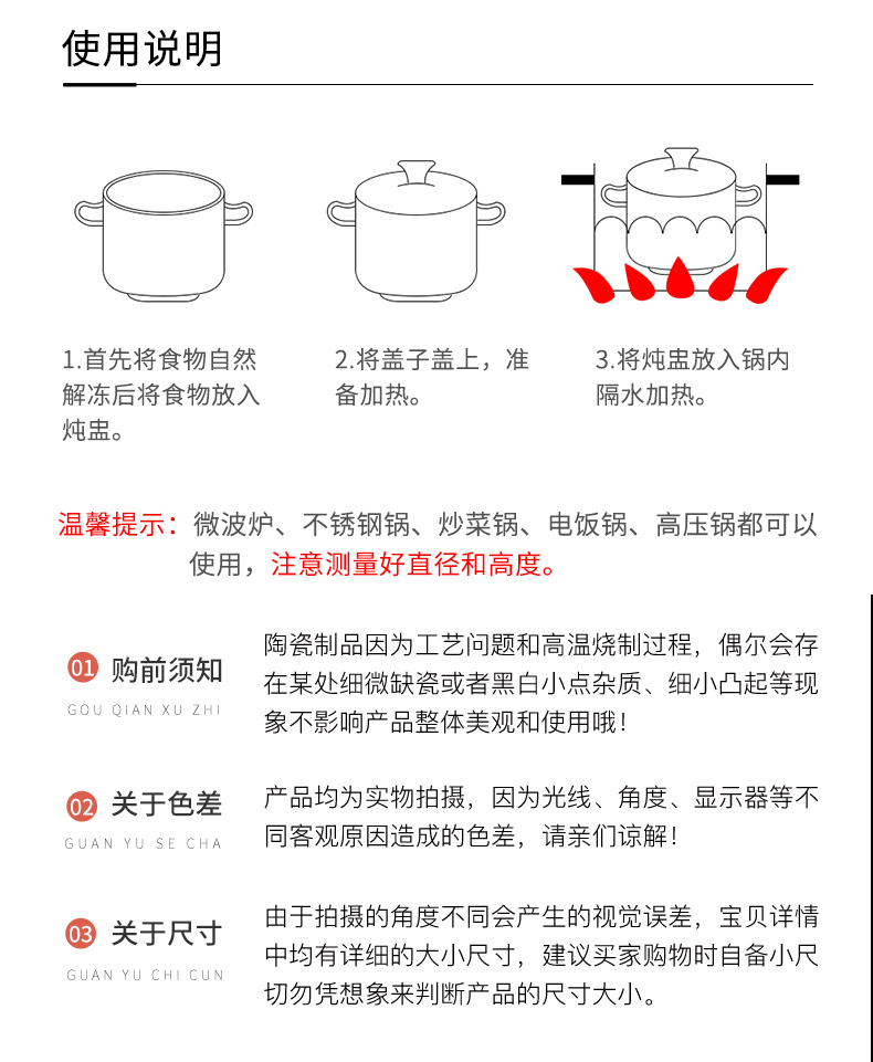 适用范围: 电炖盅、电饭煲、蒸锅、微波炉、烤箱、洗碗机、消毒柜